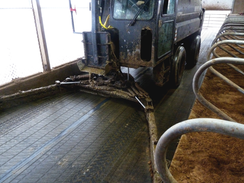 Alle unsere Bodenbeläge sind für die mechanische Reinigung ausgelegt, einschließlich der Verwendung von Gasschabern, Roboterschabern, Kompaktladern und Mistsaugern. In großen Milchviehbetrieben ist die mechanisierte Mistbeseitigung nicht nur üblich, sondern unverzichtbar. Wenn ein Matten-System schweren Geräten nicht standhält, hat es in einem modernen, leistungsstarken Stall einfach nichts zu suchen.