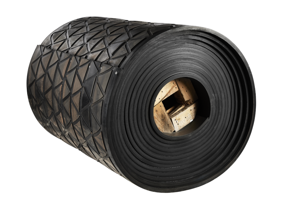 Gerillter Walzgummi wird aus recyceltem Förderbandgummi hergestellt und mit internen Stahlkabeln verstärkt, um eine hervorragende Festigkeit und Stabilität zu gewährleisten. Dieses robuste Material ist so konstruiert, dass es extremer Abnutzung standhält, und eignet sich daher ideal für den starken Verkehr und die rauen Bedingungen in Milchviehställen.