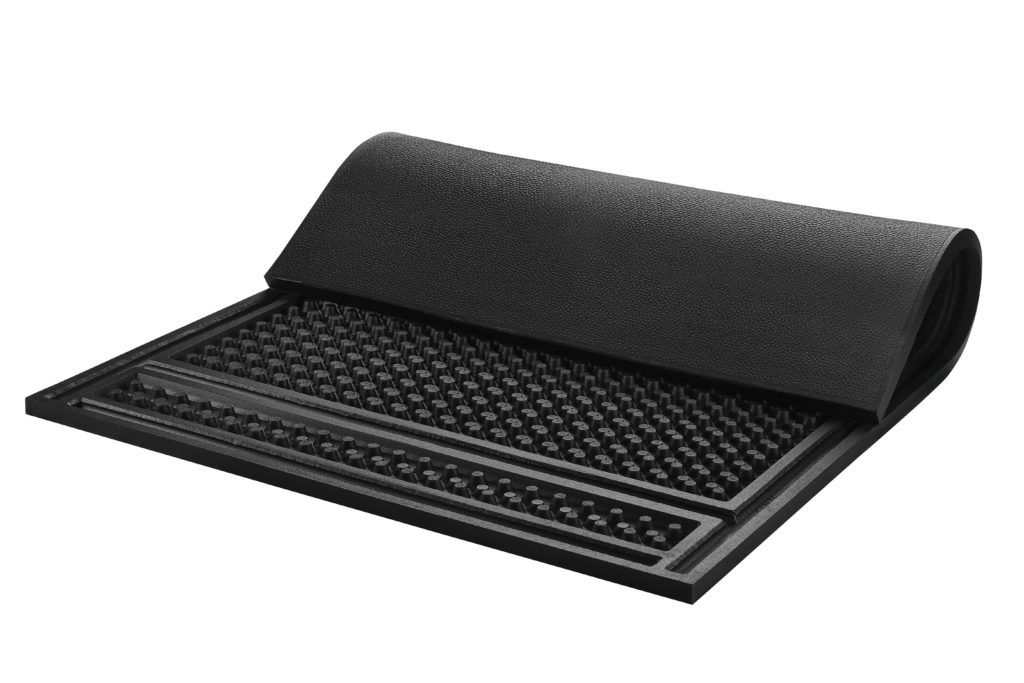 For biosecurity, you can apply a livestock-safe disinfectant following the manufacturer’s instructions. Avoid harsh chemicals or petroleum-based cleaners, as they can damage the mat’s surface.